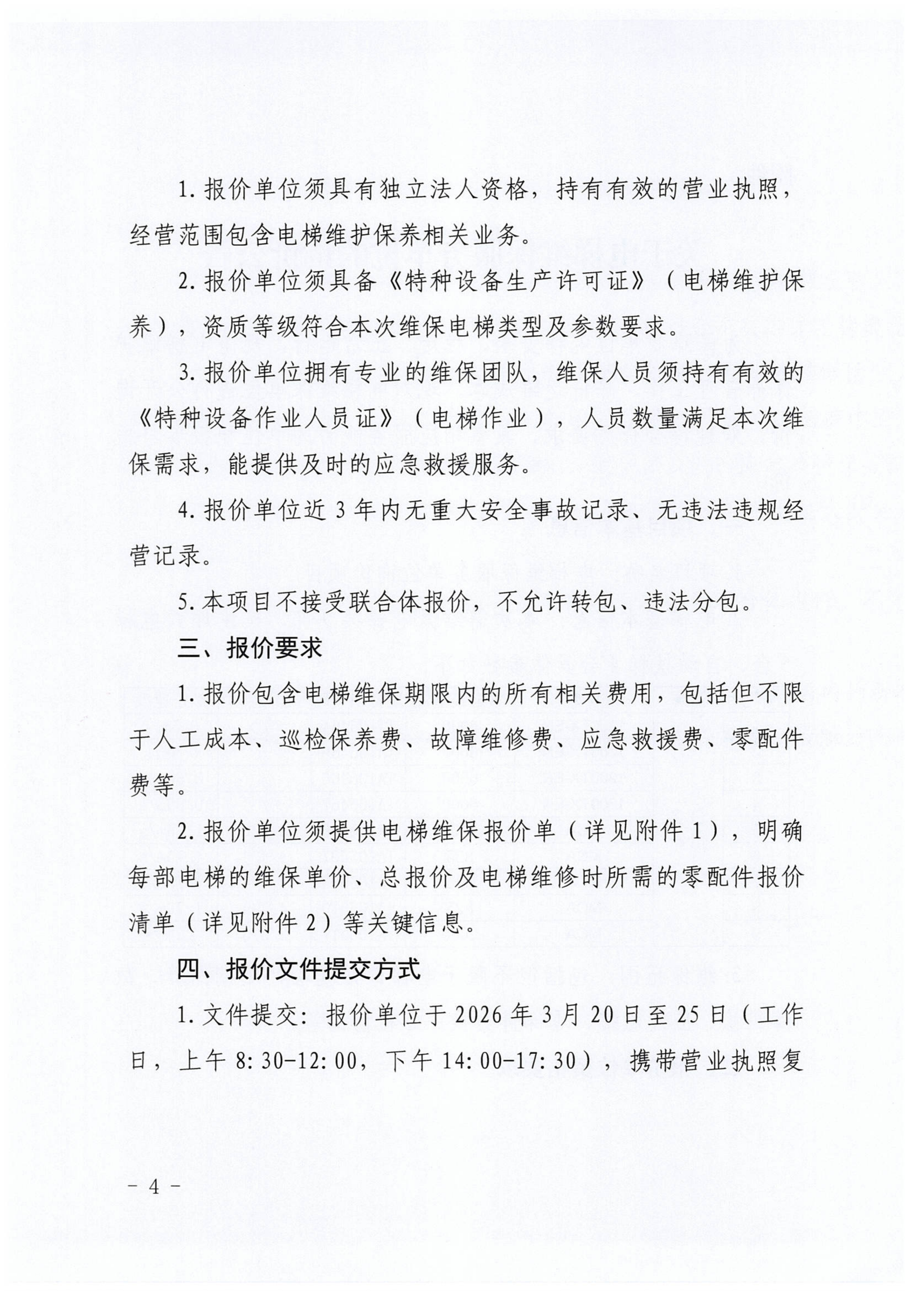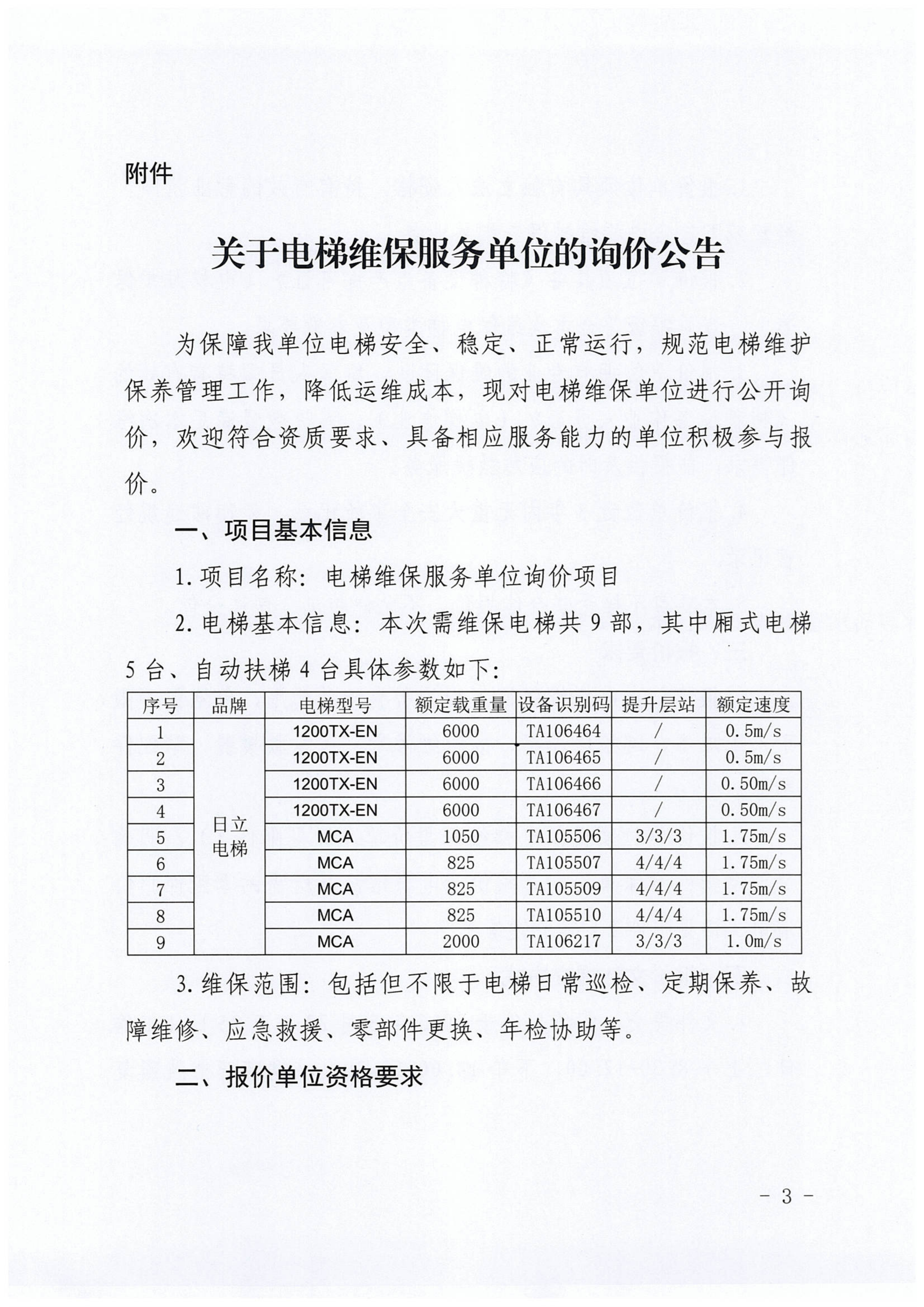 关于电梯维保服务单位的询价公告