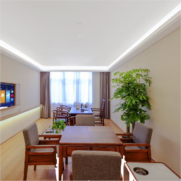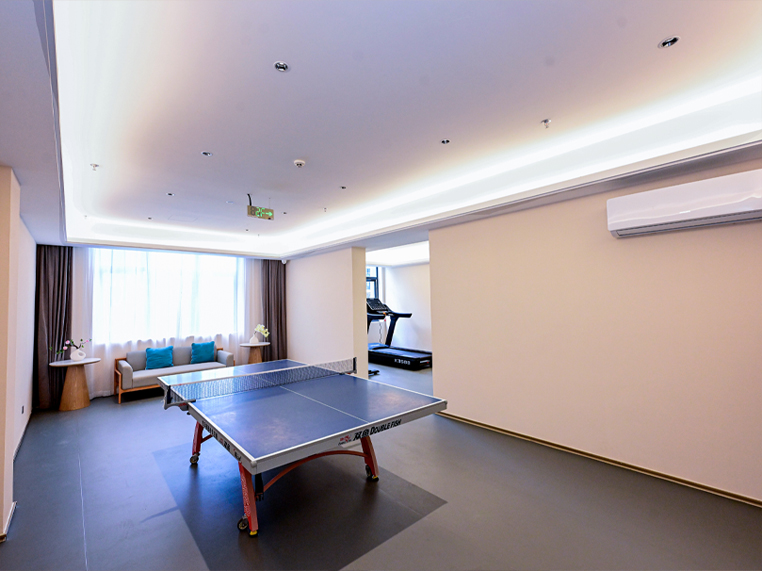 超大免费停车场、客房叫醒服务、休闲商务区、私密包厢茶室2间、共享图书馆、健身房(跑步机和动感单车)、桌球室、乒乓球室等。