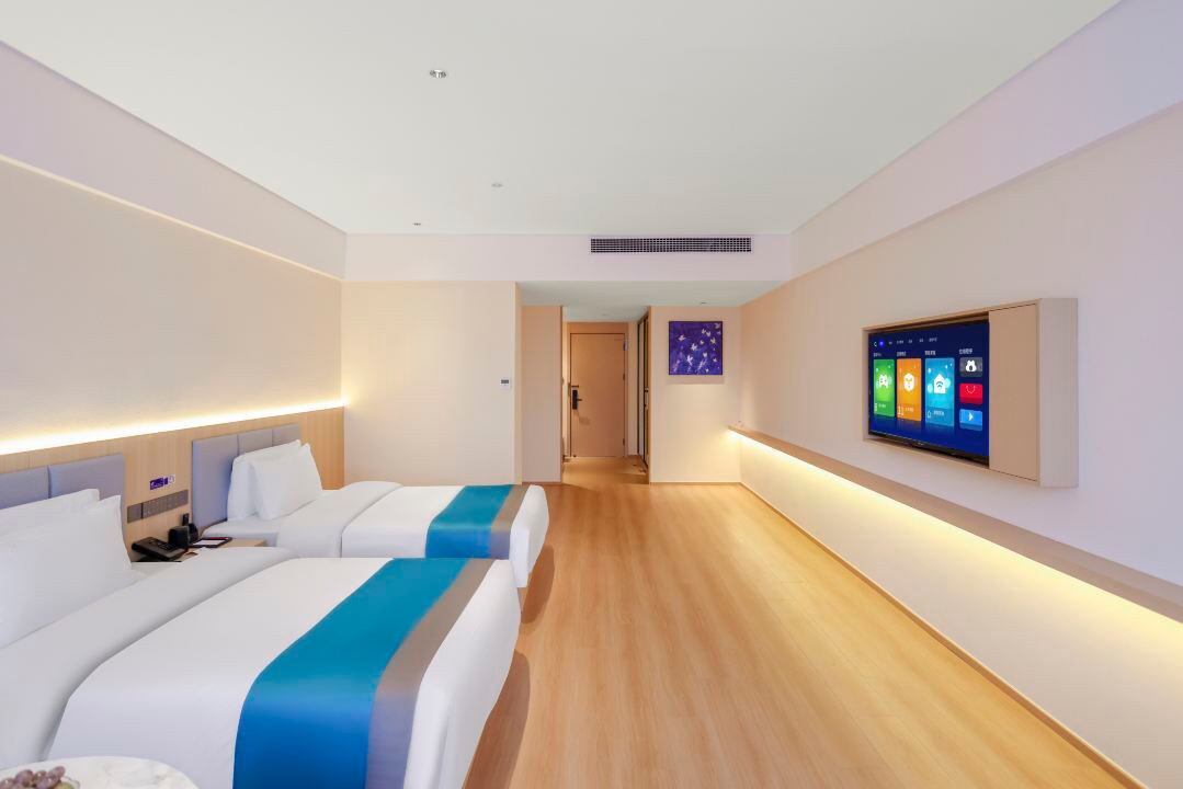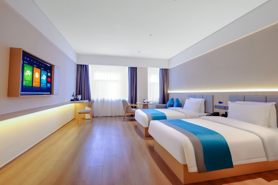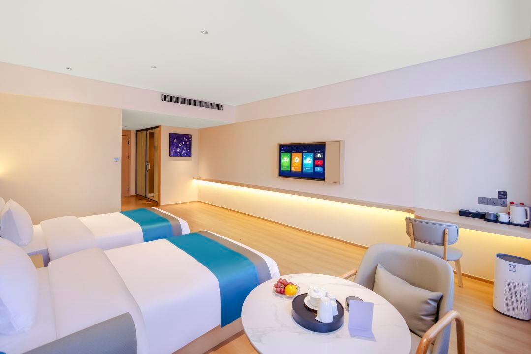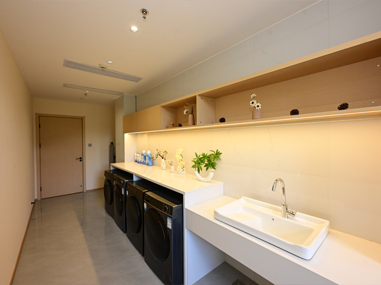 自助入住一体机:自助选房型、房号、30s完成入住。自助洗衣房:内设洗衣机、烘干机、挂烫机等设备,且配备洗衣液和干净衣物洗衣篮。