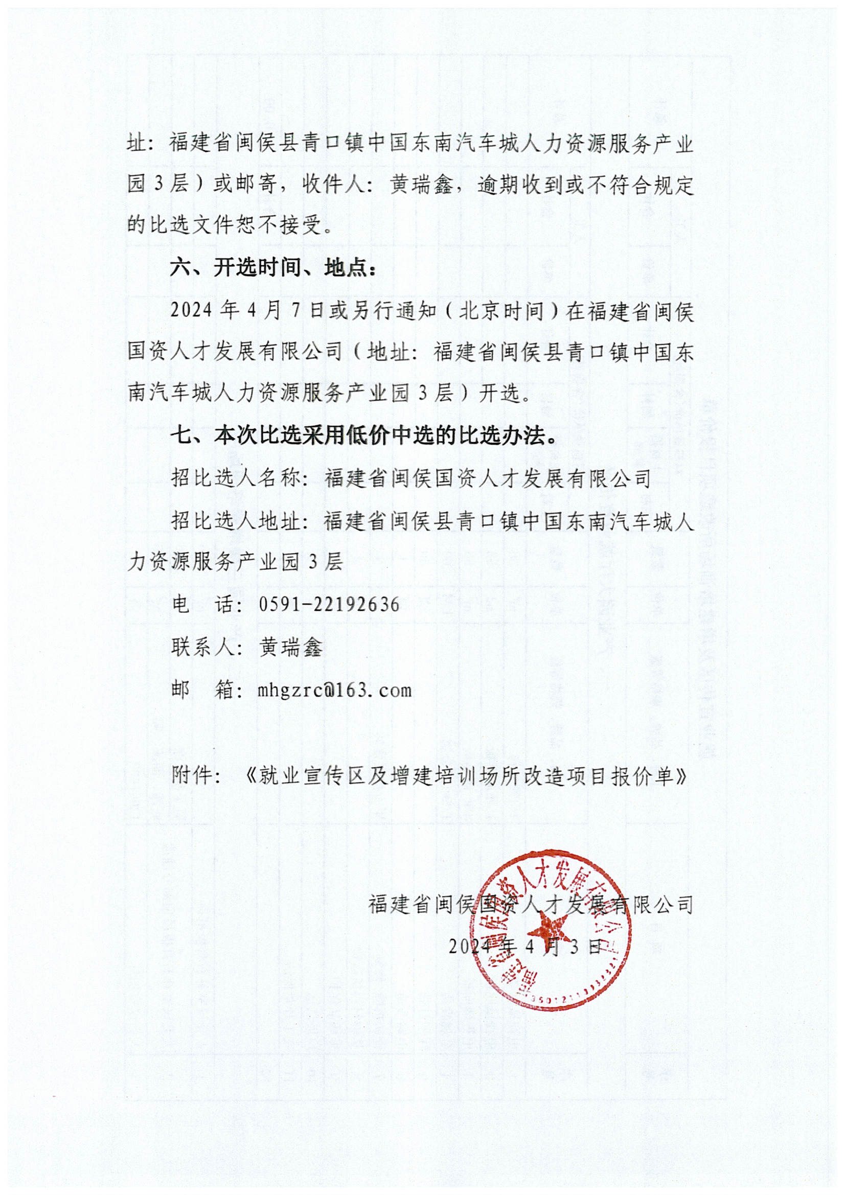 东南汽车城人力资源服务产业园大厅就业宣传区及增建培训场所改造项目的公开比选公告