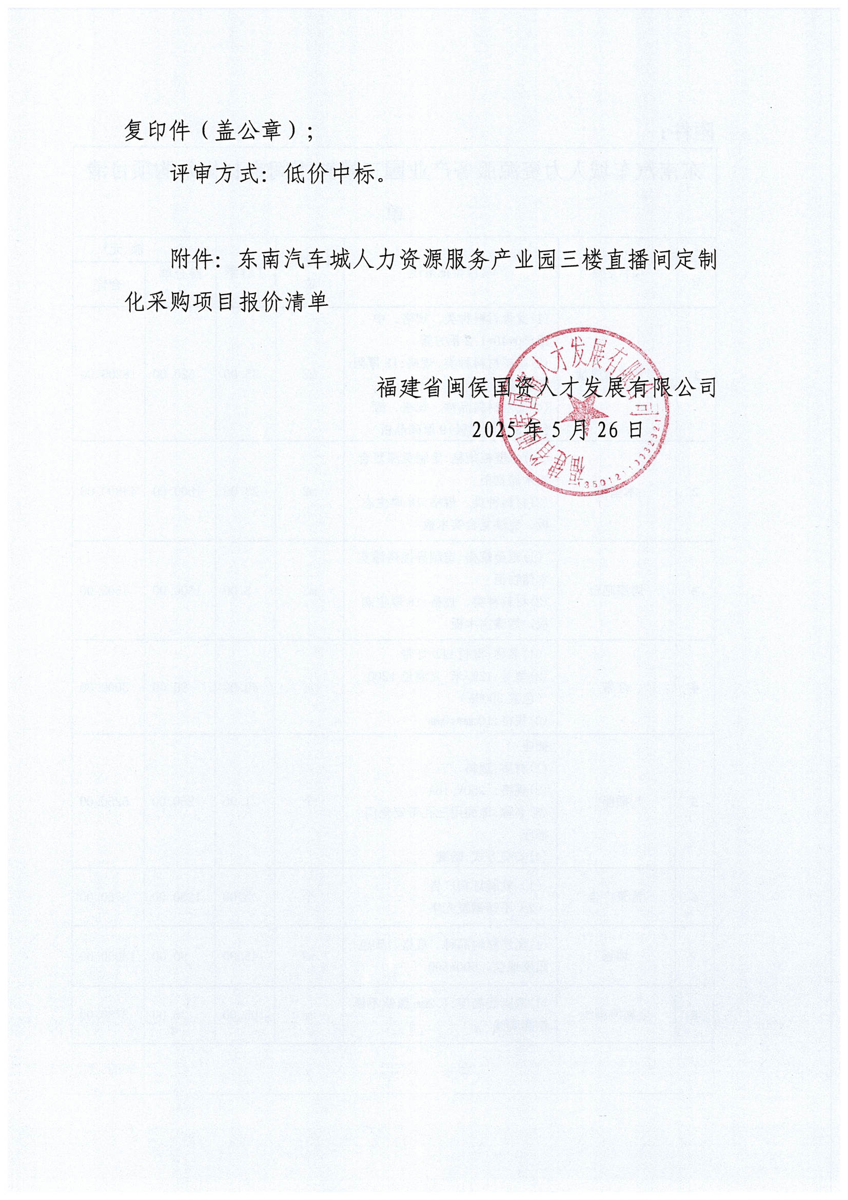 东南汽车城人力资源服务产业园三楼直播间定制化采购项目公开比选公告