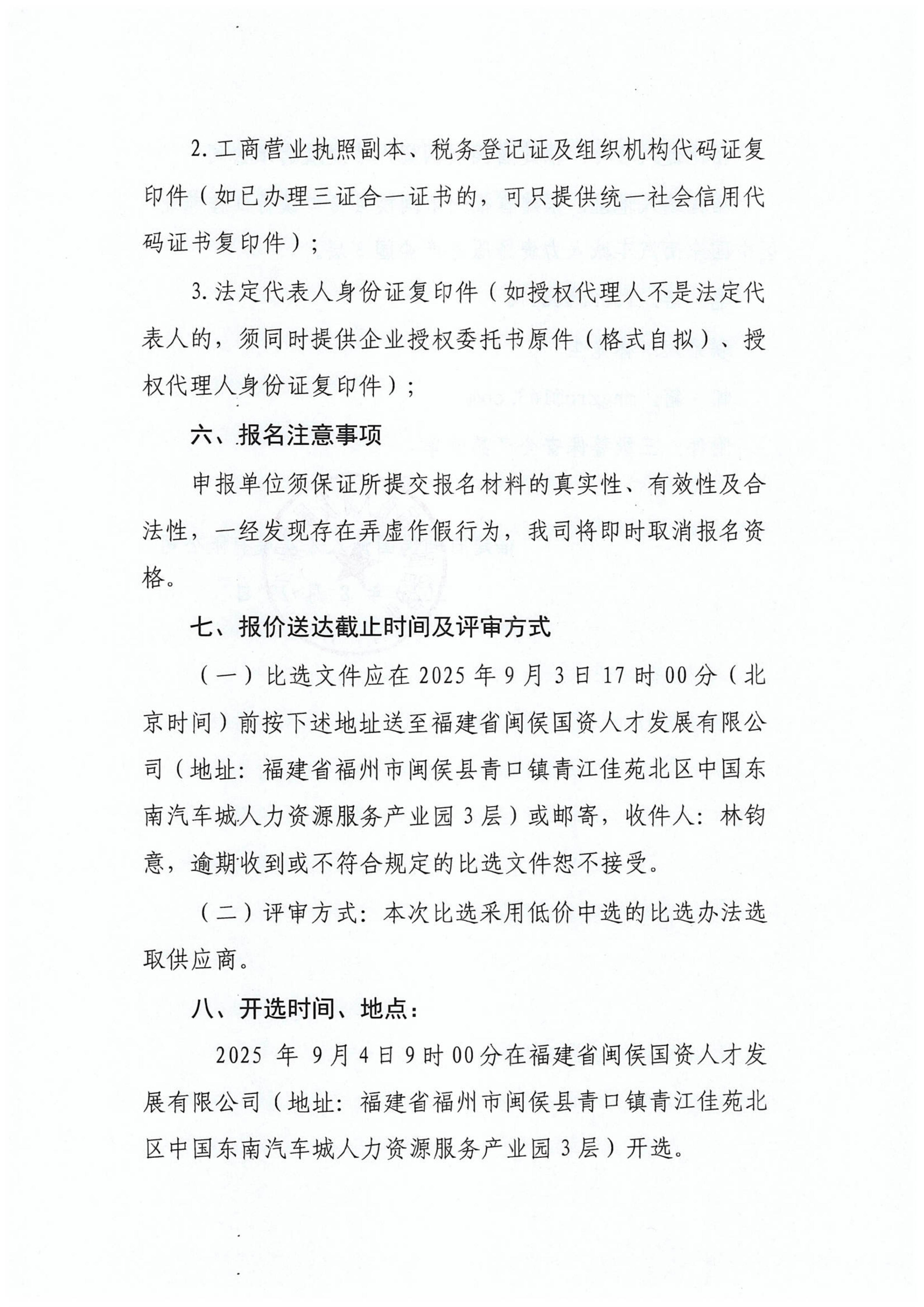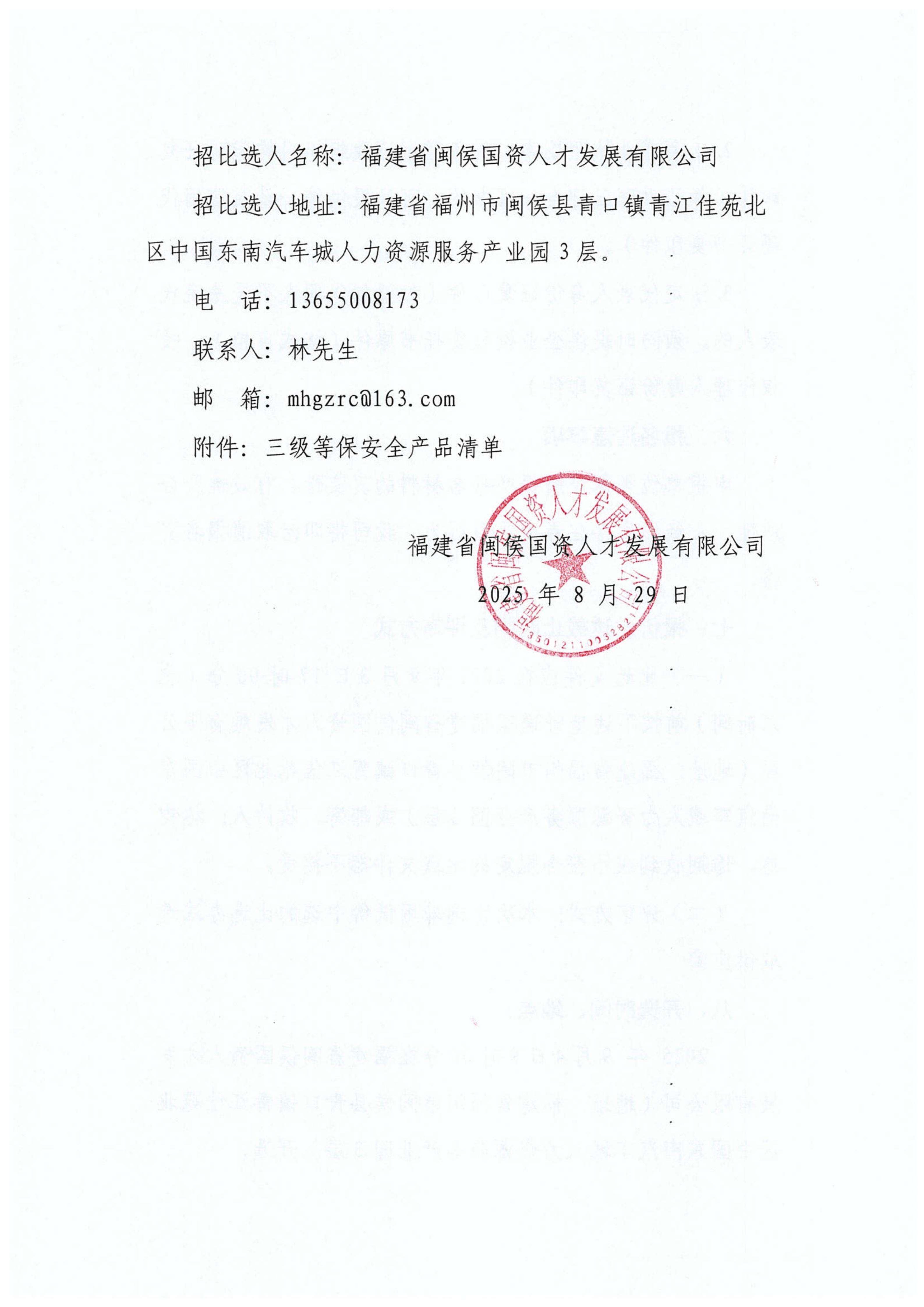 福建省闽侯国资人才发展有限公司关于申请“国家信息安全等级保护三级认证”公开比选的公告