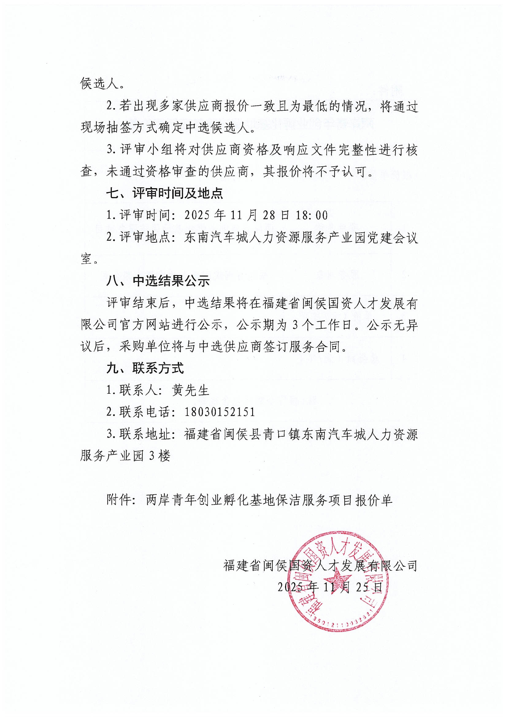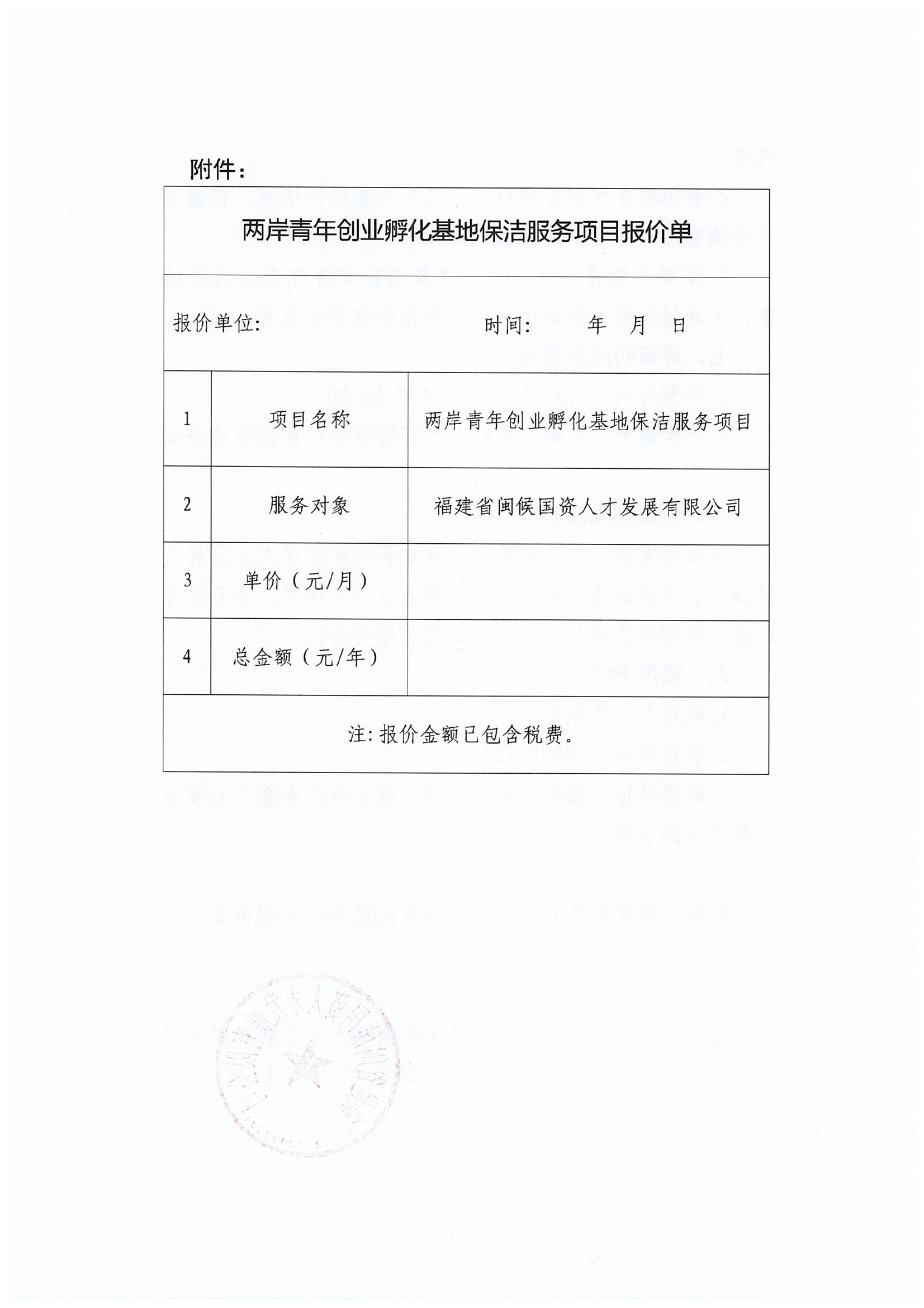 关于采购两岸青年创业孵化基地公共区域卫生保洁服务项目公开比选的公告