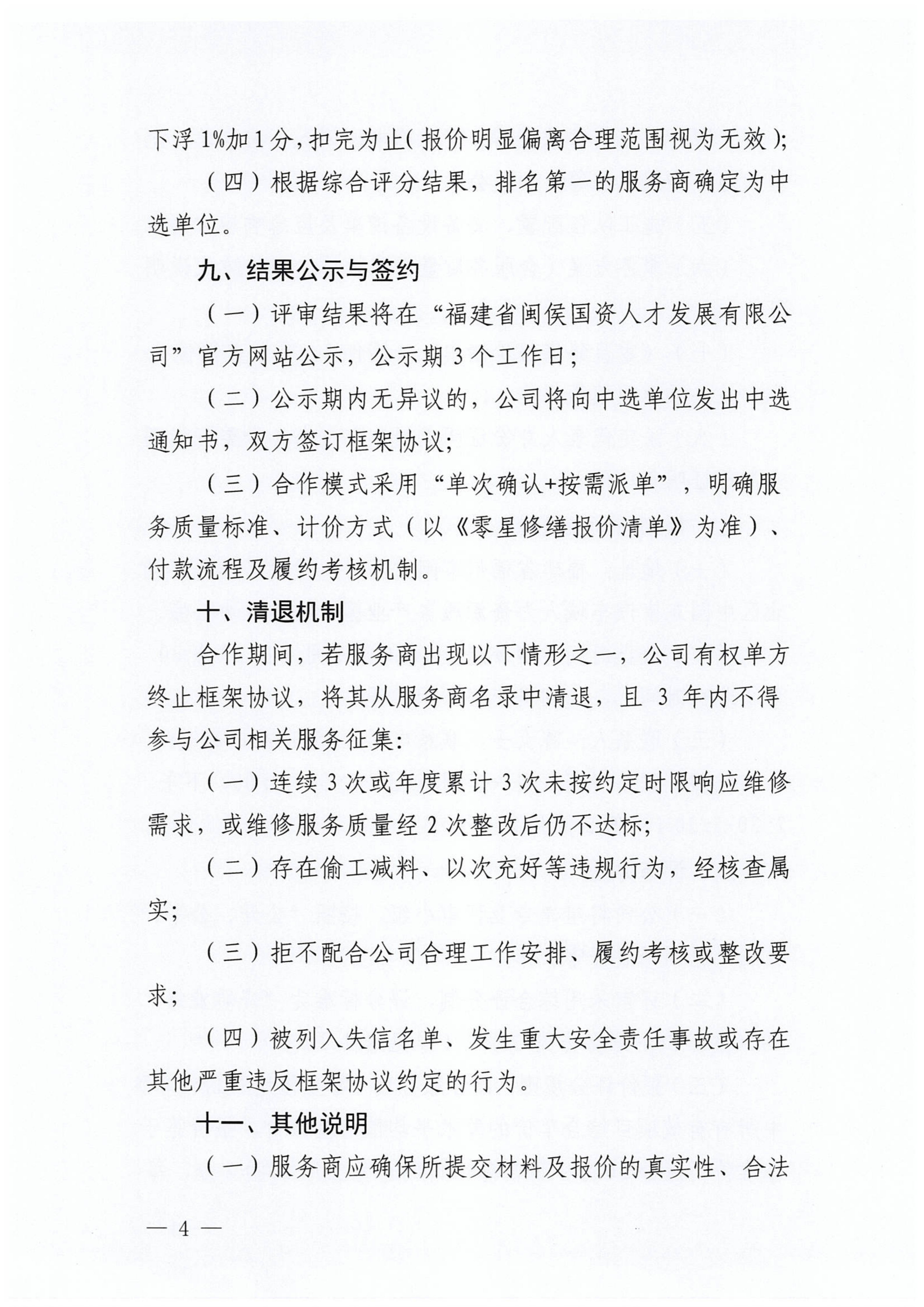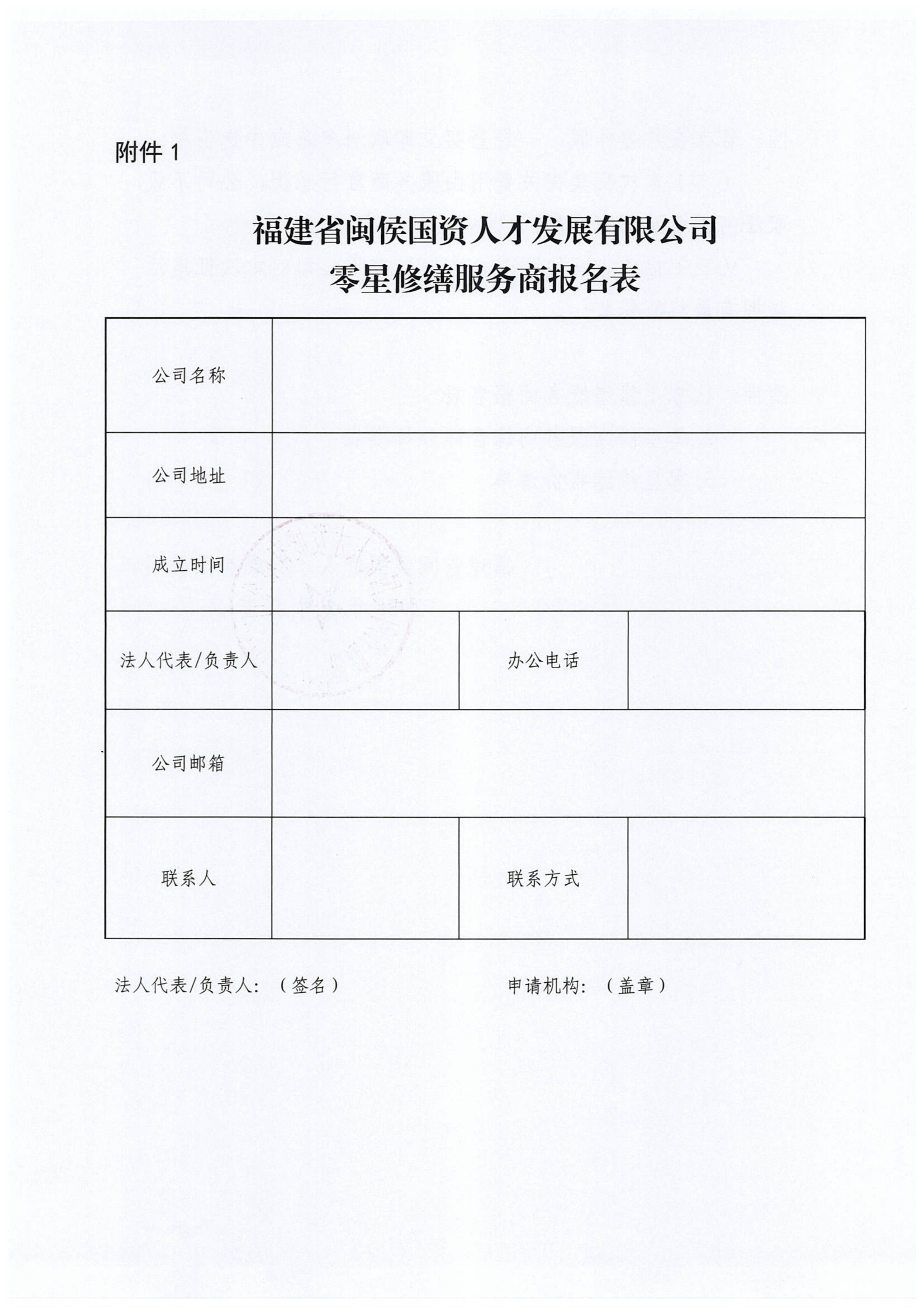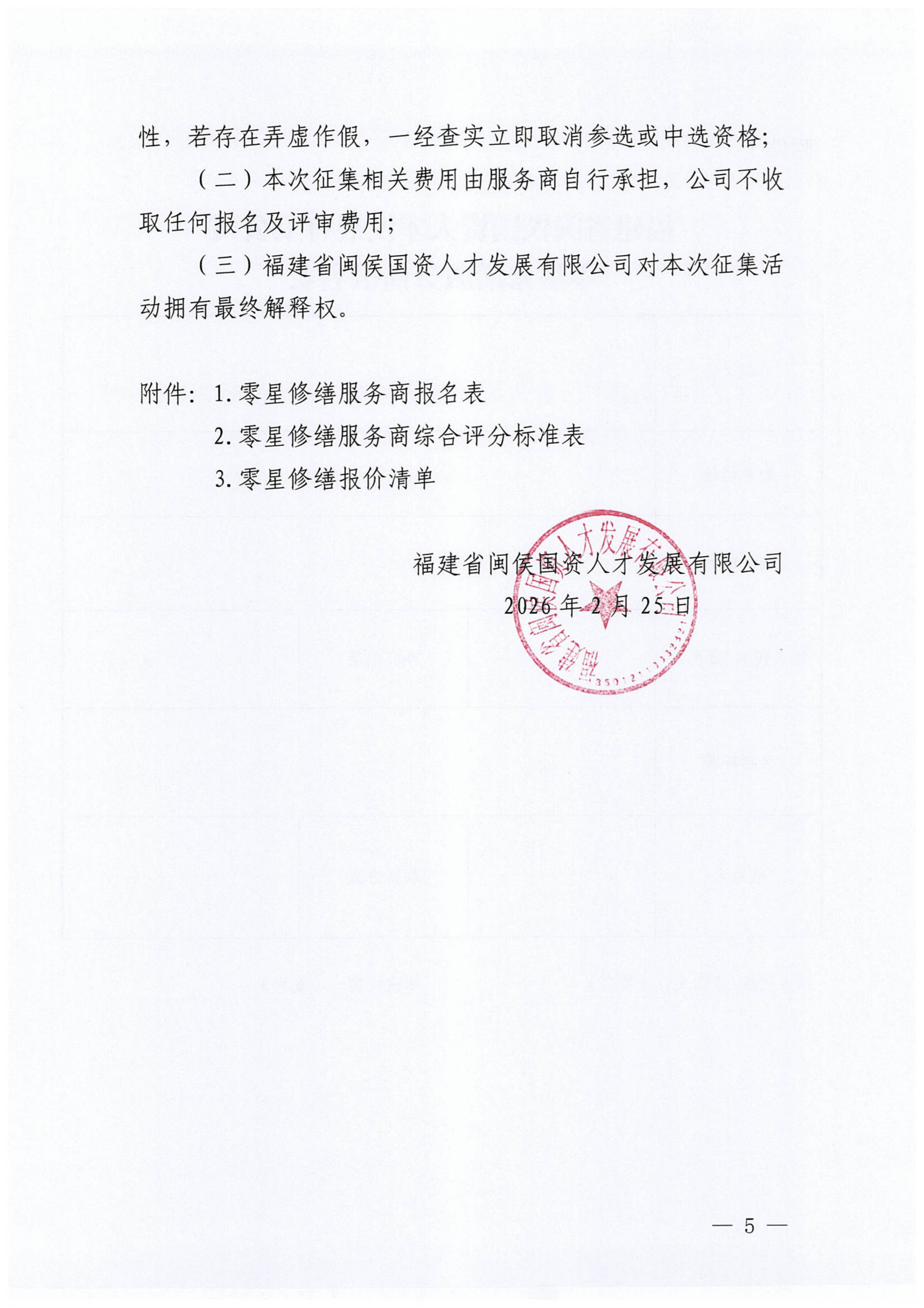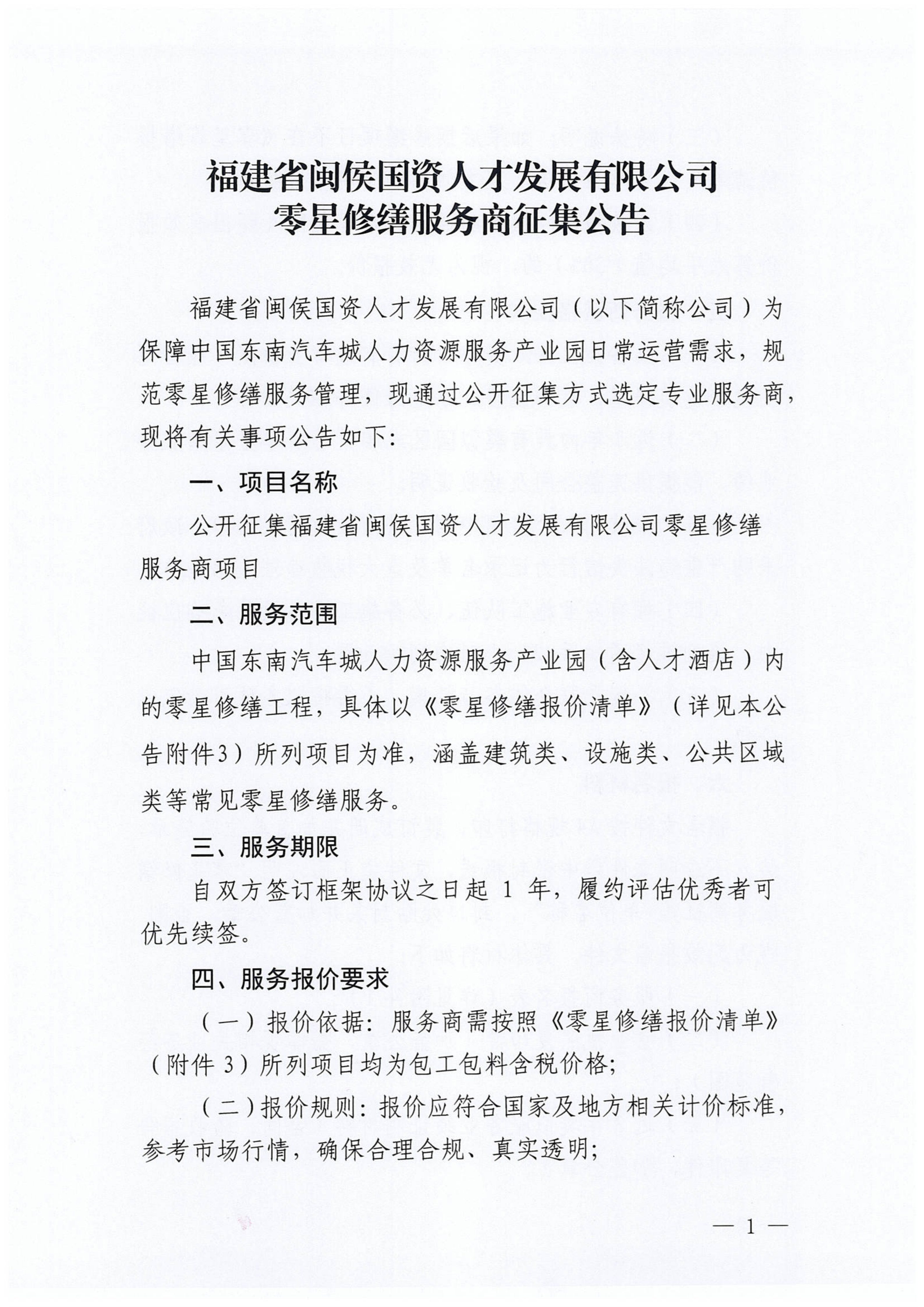 福建省闽侯国资人才发展有限公司零星修缮服务商征集公告