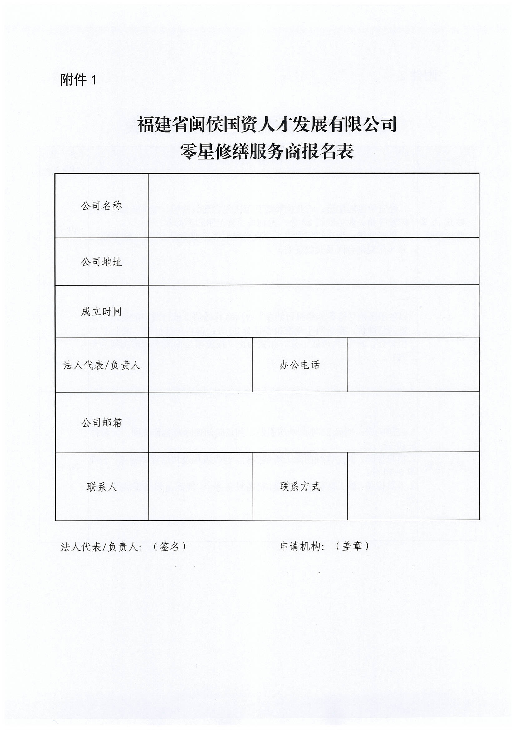 福建省闽侯国资人才发展有限公司零星修缮服务商征集延期公告