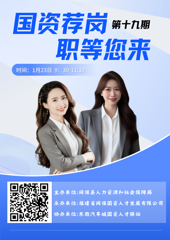 “国资荐岗,职等您来”第十九期直播带岗活动,将于1月23日(周五)9:30-11:30准时开播!锁定直播间,足不出户就能对接靠谱好岗,开启职场新可能!